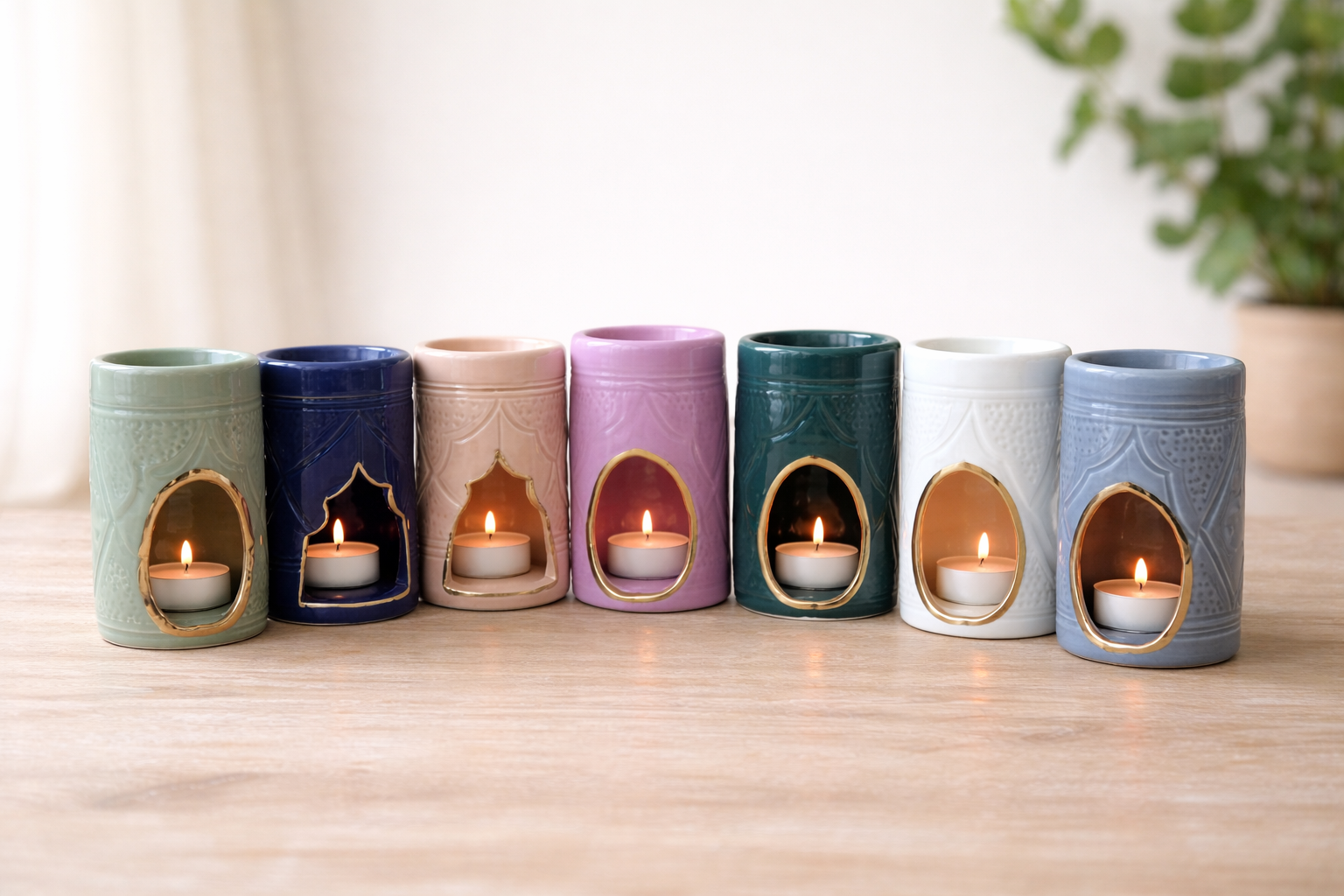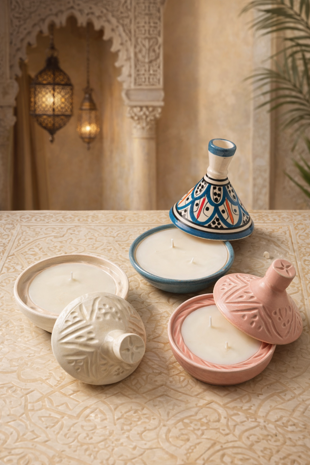Wij werken samen met een vaste leverancier in Marokko die authentiek aardewerk levert, geïnspireerd door eeuwenoude Arabische tradities. In ons atelier transformeren wij deze bijzondere stukken tot exclusieve kaarsen, met aandacht voor detail, sfeer en kwaliteit.